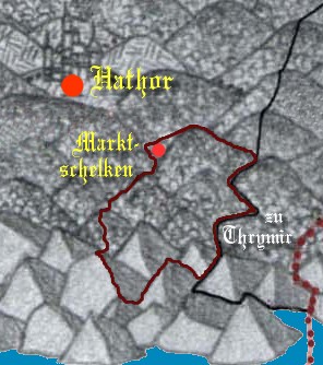 Schelken ist eine Vogtei gelegen im Südosten der Präfektur Hathor, Provinz Scorien. Der Herrschaftssitz ist die Siedlung Marktschelken im Norden der Vogtei, was jedoch - ganz der Region entsprechend - auch nur ein etwas größeres der verstreut liegenden kleinen Nester ist. Seit einigen Generationen wird die Vogtei regiert durch das Geschlecht derer von Kelling, derzeitiges Oberhaupt und damit Vogt ist Aiden von Kelling.