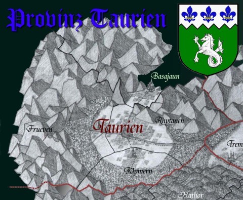 Banner Text Taurien ist neben Tempturien die flächenmäßig größe Provinz und liegt im Nordwesten der Insel. Es ist aufgeteilt in die Präfekturen (hier meist Kraje genannt) Rhytanen, Basajaun, Klymern und Frueven, wobei letztere eine eher "junge" Gebietschaft ist. Bis in die erste Phase des Großen Krieges gehörte das Gebiet zu Rhytanen und wurde erst im Rahmen der Westbesiedlung (als Folge von Kriegszerstörungen) eigenständig.