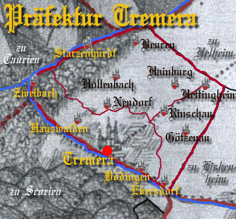Banner Text  Die Präfektur Tremera (mit der gleichnamigen Hauptstadt) liegt im Südwesten der Provinz Tempturien und betrachtet sich als das Herz Magoniens.